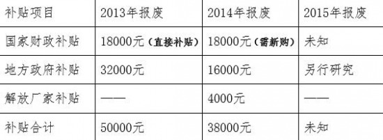 以上海為例:車主報廢2007年注冊登記的重型載貨車換購解放J6P牽引,2013-2015年不同年份報廢所享受的補(bǔ)貼如下:
